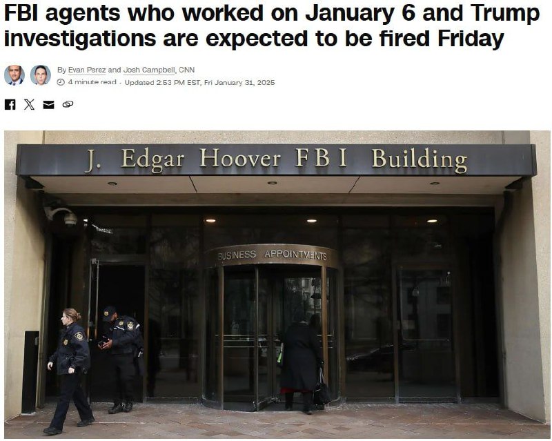🇺🇸Dozens of FBI agents involved in the investigation into the January 6, 2021, storming of the Capitol and the investigation into Trump will be fired today.