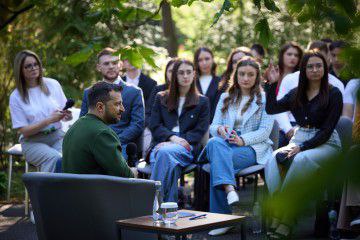 During his working visit to Chernivtsi, the President of Ukraine Volodymyr Zelenskyy met with students of Yuriy Fedkovych Chernivtsi National University, Bukovinian State Medical University and Chernivtsi Institute of Trade and Economic of State University of Trade and Economics.