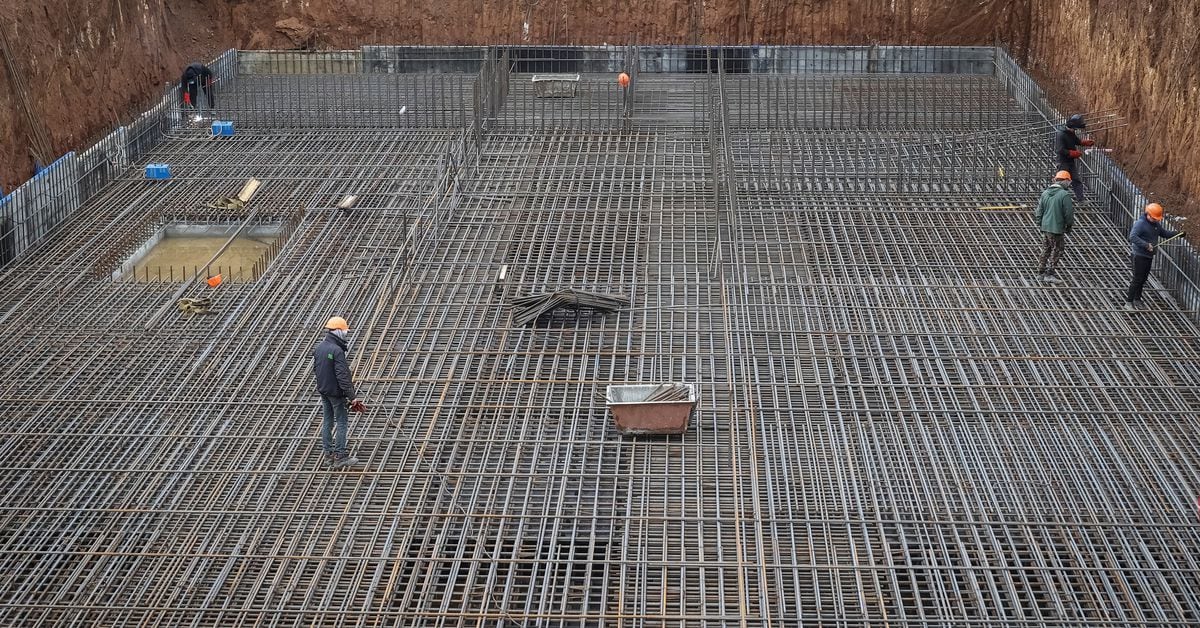 On a recent morning, workers welded together layers of steel reinforcing wire and poured cement, occasionally to the sound of the air-raid sirens that regularly ring out.