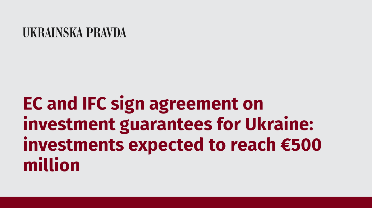 EC and IFC sign agreement on investment guarantees for Ukraine: investments expected to reach €500 million
