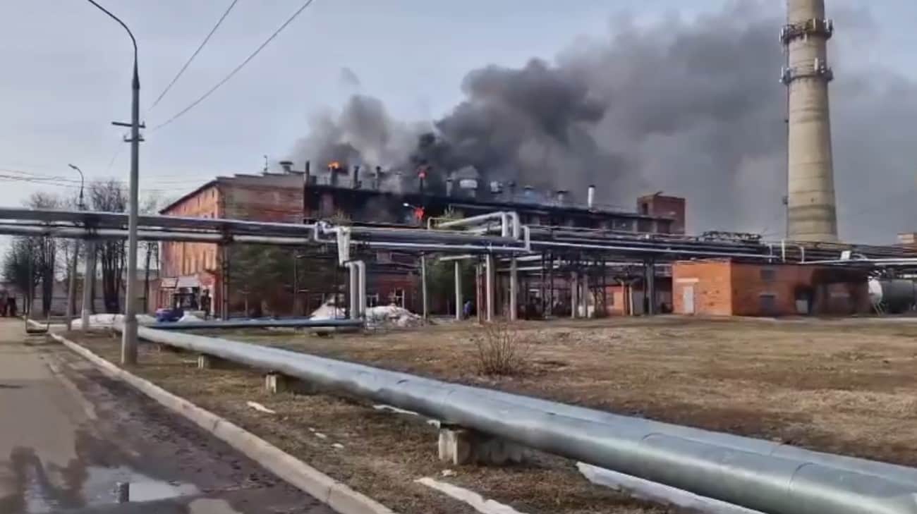 The Elektroizolit electrical insulation plant on fire near Moscow. Photo: Screenshot