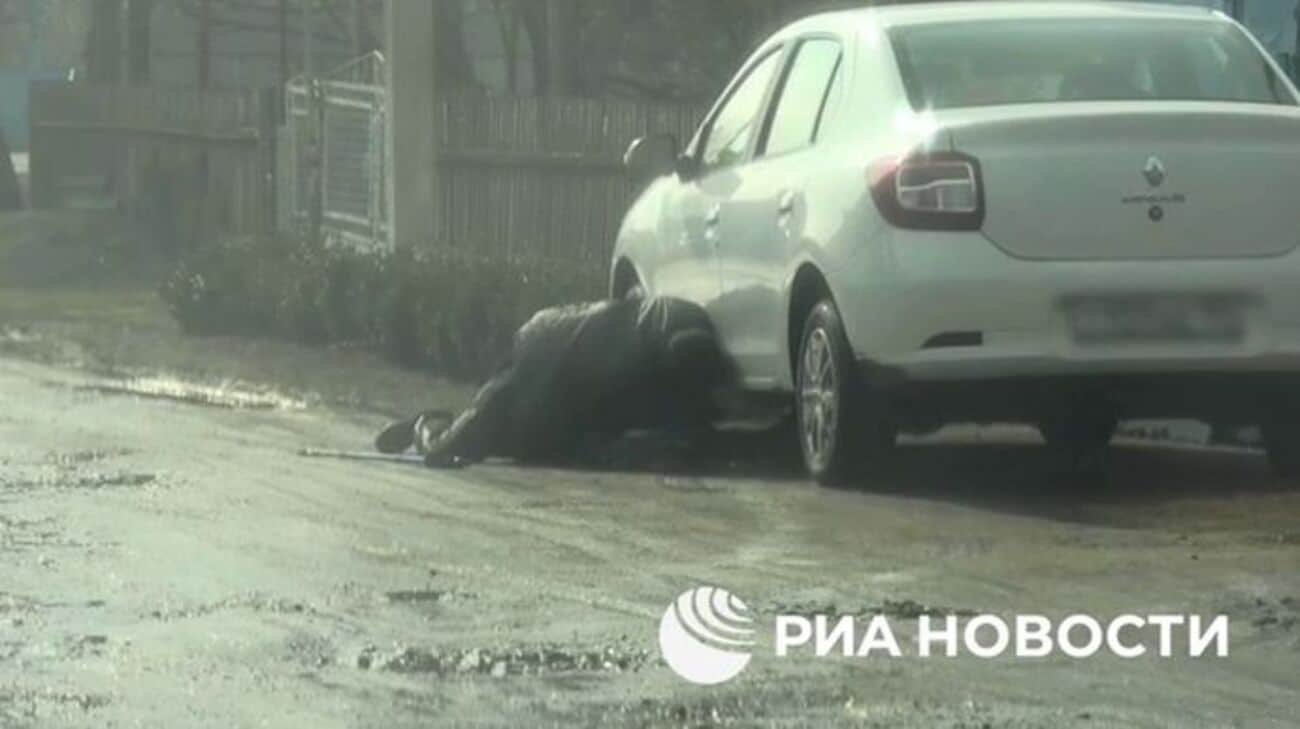 FSB claims that the man with the stick placed the explosive device under the car in the occupied territory. Screenshot