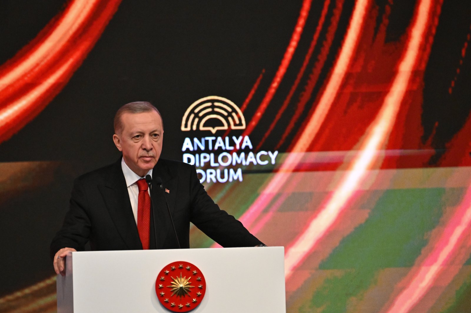 Addressing the Antalya Diplomacy Forum (ADF) on Friday, President Recep Tayyip Erdoğan lauded Türkiye’s diplomatic efforts and underlined diplomacy as the best instrument for the resolution of conflicts. Erdoğan, however, added that Ankara does not naively believe that diplomacy itself is enough and that Türkiye needs physical influence on the ground. The president said the country ranks third in the world in terms of diplomatic network.