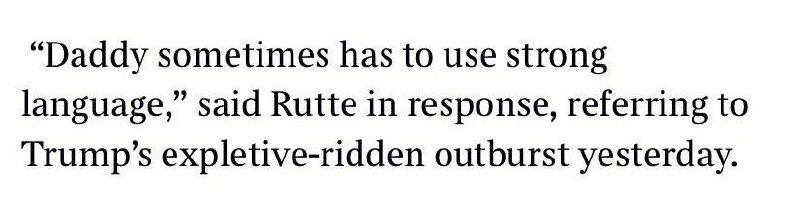 🇺🇸🏳️‍🌈⁉️ General Secretary of NATO Mark Rutte referred to President Trump as “Daddy” in response to questions about Trump’s profanity laden tirade on the Israel-Iran War yesterday.