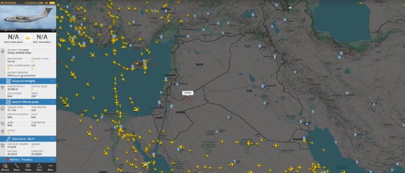 🇩🇪🇮🇱 German refueling tanker Airbus a400m Atlas over Jordan accidently turned on their transponder, it is off now. Whoops. Luftwaffe is confirmed joining in on defending Israel despite not publicly announcing their participation. How ironic. 🔗 Stellar Man View Source