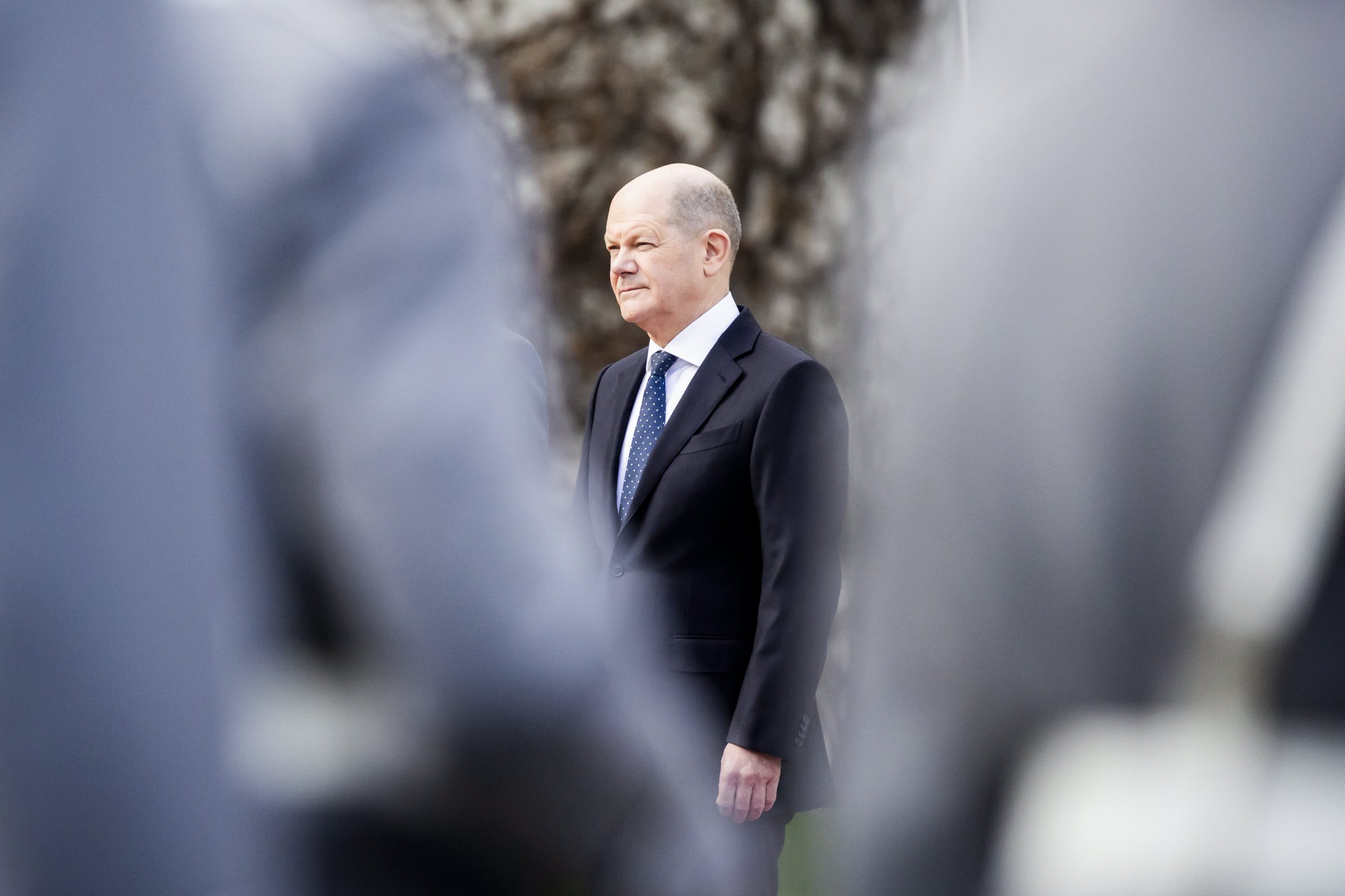 Federal Chancellor Olaf Scholz (SPD) receives French President Macron and Polish Prime Minister Tusk with military honors at the Federal Chancellery for a joint meeting.