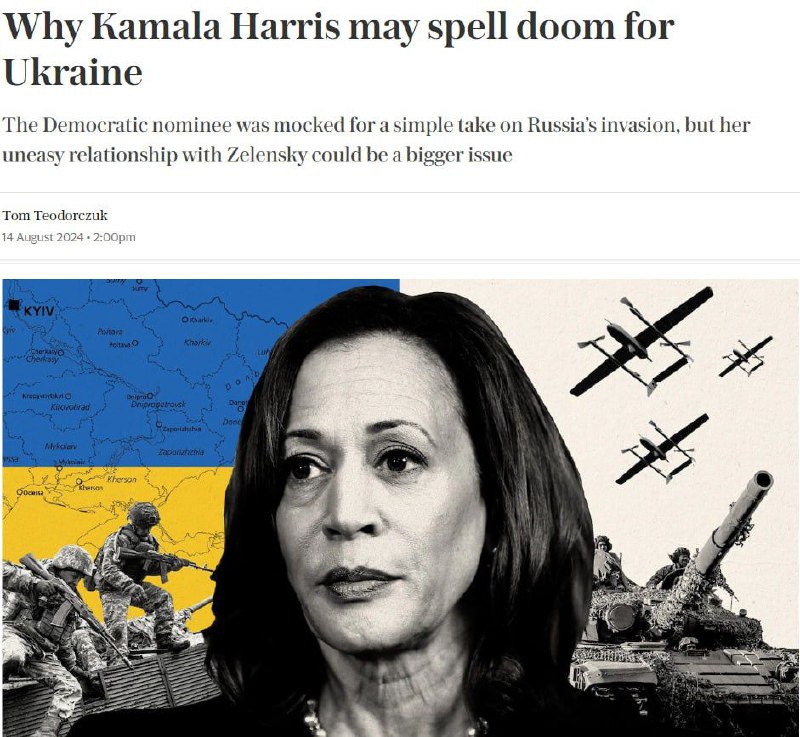 🇺🇸🇺🇦Harris could become a “Ukraine killer” due to her bad relationship with Zelensky, The Telegraph writes.