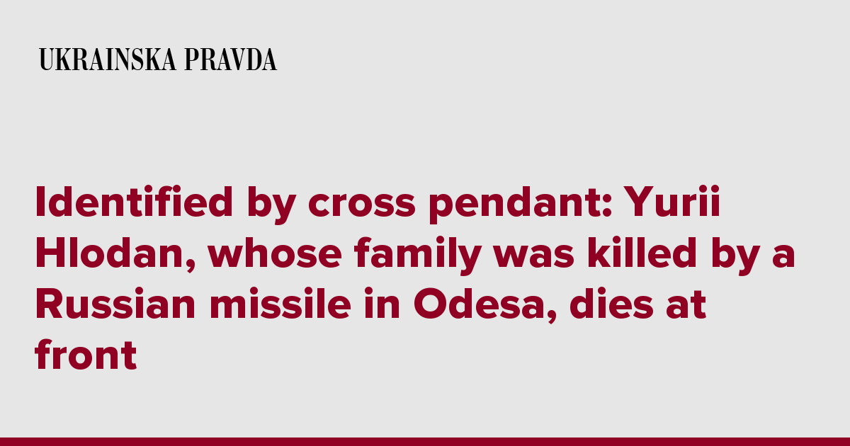 Yurii Hlodan was killed in battle. His body was identified by his cross.