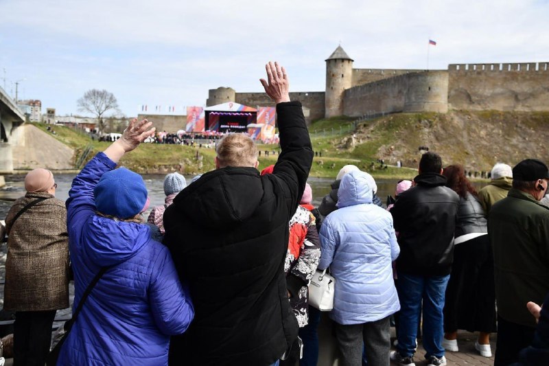 🇷🇺🇪🇪 In Estonian Narva, local residents watched a concert in honor of Victory Day across the border on the embankment.