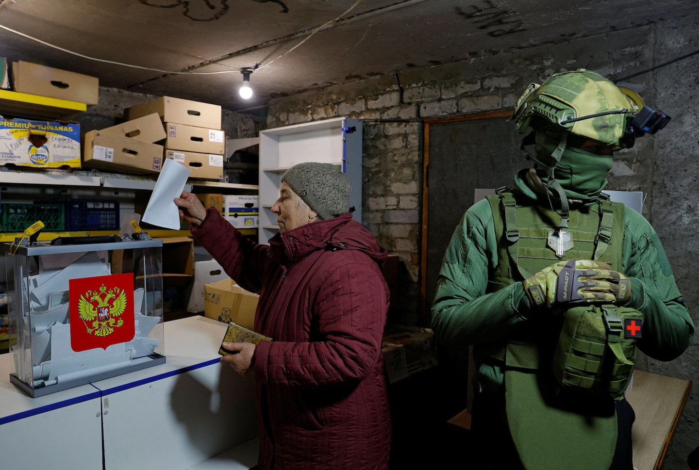 “It was two representatives from the polling station and two seeming military personnel in balaclavas with rifles, carrying ballot boxes,” the woman’s daughter, a former city council staffer who has fled the area, recounted. The woman and her daughter spoke on the condition of anonymity to protect the safety of family members living under occupation.