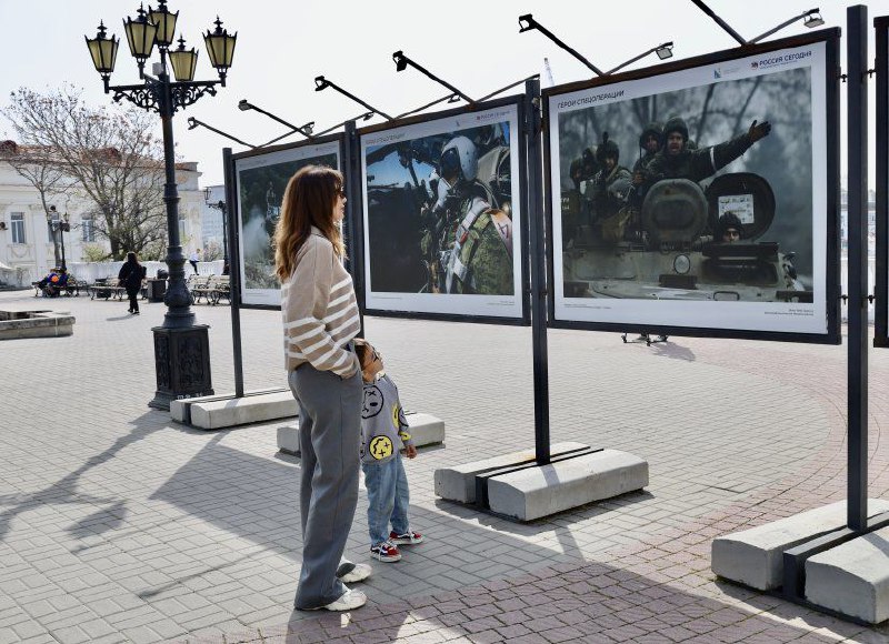 In temporarily occupied Sevastopol, on Primorsky Boulevard, a photo exhibition about the “heroes”of the russian army’s Northern Military District was opened.
