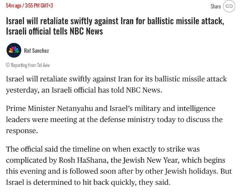 🇮🇱🇮🇷Israel wants to retaliate against Iran “immediately”, but Rosh Hashanah, which begins tonight, is in the way. After that, other Jewish holidays will begin.