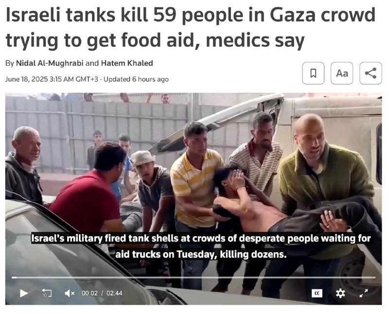 🇮🇱🇵🇸Israeli tanks opened fire on a crowd seeking humanitarian aid in the southern Gaza Strip, killing 59 people and wounding more than 200.