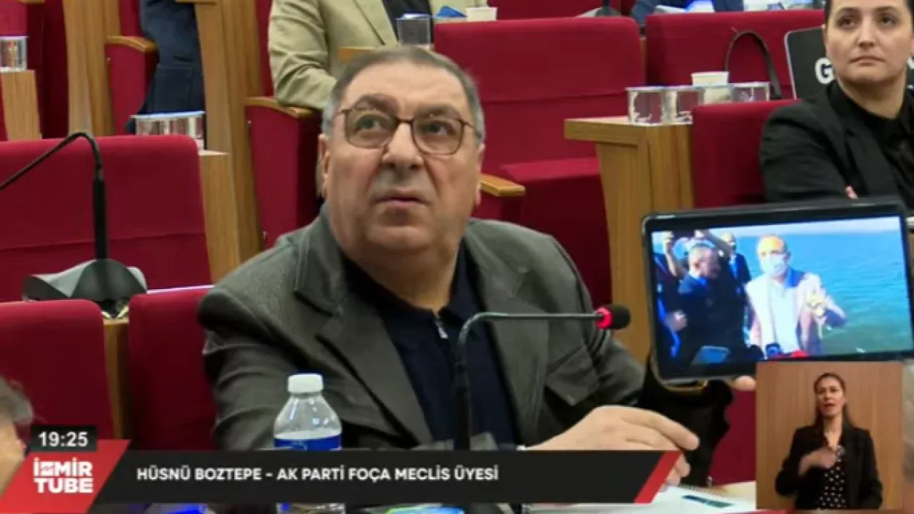 Toplantı sırasında tansiyonu yükselten an, AK Parti Foça Meclis Üyesi Hüsnü Boztepenin söz almasıyla yaşandı. Boztepe, körfez kirliliği ve kentte yıllardır süren koku sorununa dikkat çekmek için bir video izletmek istedi. Videoda, iki yıl önce dönemin AK Parti İl Başkanı Kerem Ali Sürekli ve Büyükşehir Belediyesi Grup Başkanvekili Özgür Hızalın Çiğli Arıtma Tesisi açıklarında düzenlediği basın açıklamasından görüntüler yer alıyordu.