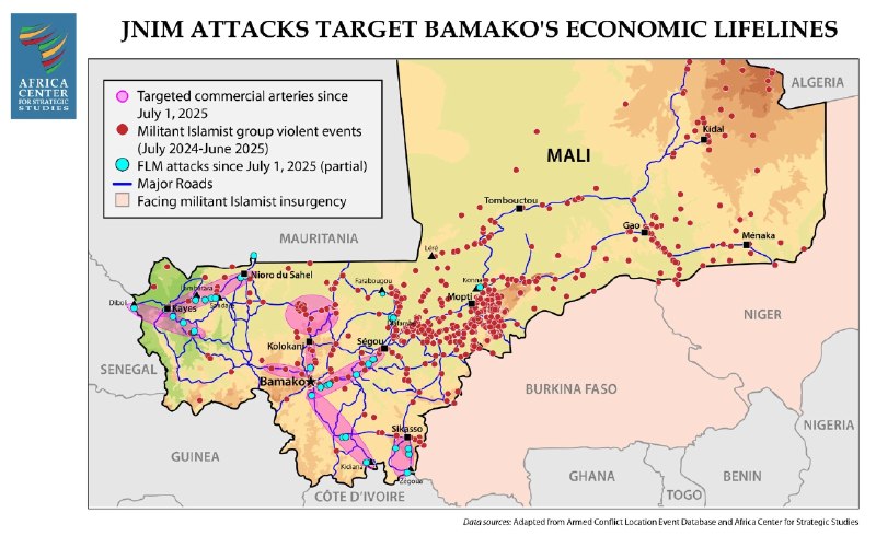 🇲🇱 ⬜️ JNIM’s center of gravity has shifted west. FLM refers to Katiba Macina, the biggest individual Katiba in JNIM. As you can see, they are well beyond the Macina. The manpower required for this is in the tens of thousands. https://www.counterextremism.com/blog/sahel-monitoring-september-2025 📎 Dilawar Karwan View Source