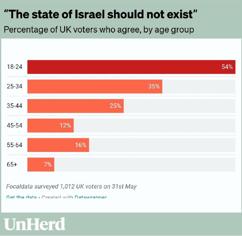 Majority of young Britons think Israel should not exist 54% of Britons aged 1…