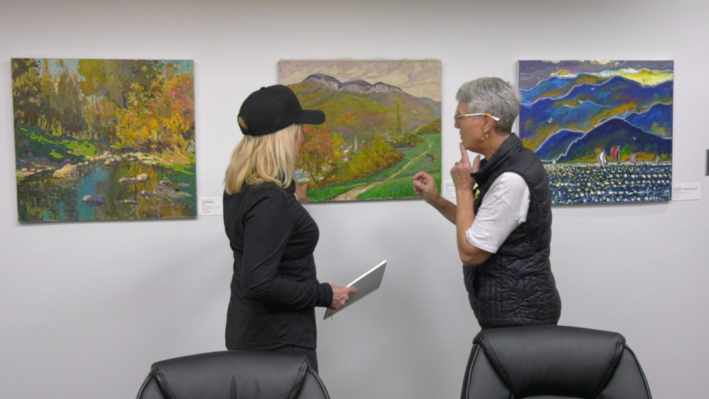 Andriy Chebotaru is a member of the National Union of Artists of Ukraine and some of his artwork is being sold as part of the North Bay art show next week in support of Ukraine. (Eric Taschner/CTV News Northern Ontario)Both charities worked with a group known as the National Union of Artists of Ukraine to bring the paintings from the war-torn country to Canada.