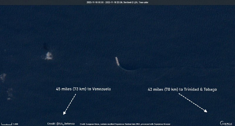 🇺🇸🪖🗺 — Observers report that US Navy USS Iwo Jima (LHD)-7 is located roughly 43 miles (70 km) from the coast of Trinidad & Tobago (🇹🇹) and 45 miles (73 km) from the coast of Venezuela 🔗 SA Defensa (@SA_Defensa): View Source