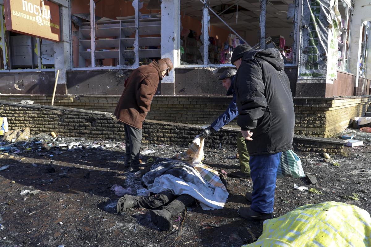 KYIV, Ukraine (AP) — At least 25 people were killed Sunday by shelling at a market on the outskirts of the city of Donetsk in Russian-occupied Ukraine, local officials reported.