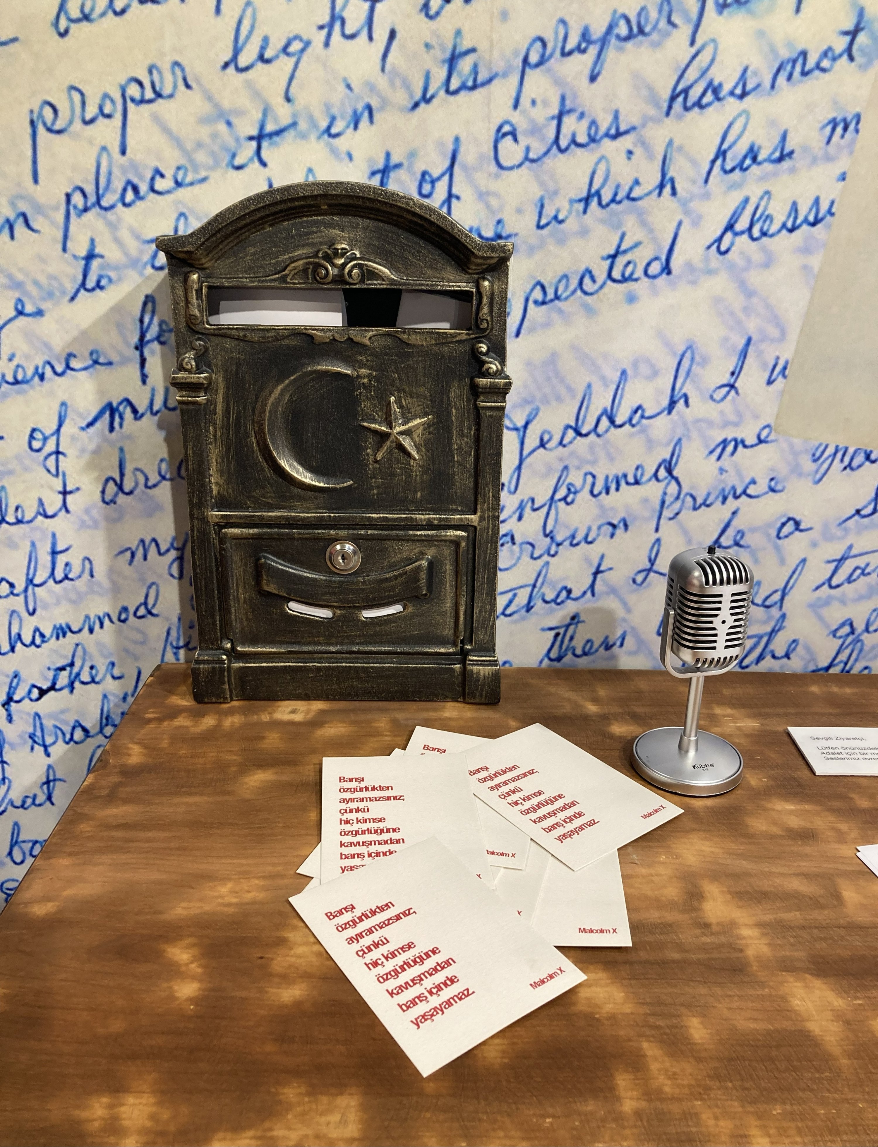 From there, the day continued at the Atatürk Cultural Center (AKM) in Taksim, where “Echoes” brings Malcolm X and Şule Yüksel Şenler into the same frame – two figures rarely placed together yet unexpectedly aligned. Malcolm X confronted racial injustice in the United States and shaped a broader global anti-colonial discourse, while Şenler challenged restrictions on women’s public visibility in Türkiye, particularly during the headscarf debates. Both became influential voices for marginalized communities and reshaped national conversations about dignity, belief and public space. Encountered immediately after the Gaza-focused exhibition, their stories highlighted recurring global patterns of silencing and resistance.