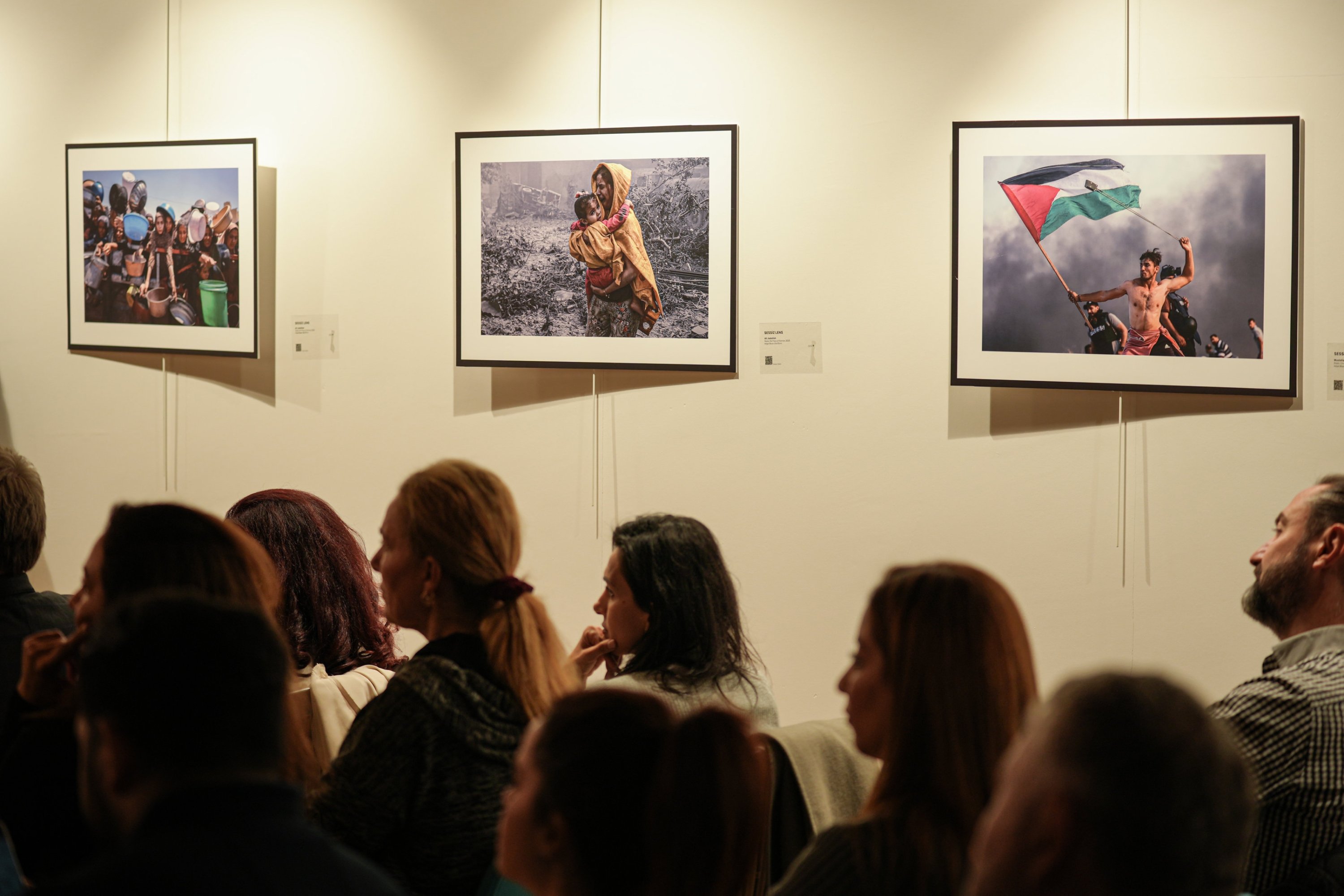 The first stop was Merkezefendi, where the Türkiye Photography Foundation is hosting “The Silent Lens,” an exhibition curated by Nevzat Yıldırım. The show brings together the work of two Gaza-born photojournalists, Mustafa Hassona and Ali Jadallah, whose photographs have become central to global documentation of the conflict. The exhibition opened as the number of Palestinian journalists killed in the war reached 254. Their names appear on a long memorial panel inside the gallery, turning the space into both an archive and a place of quiet reflection.