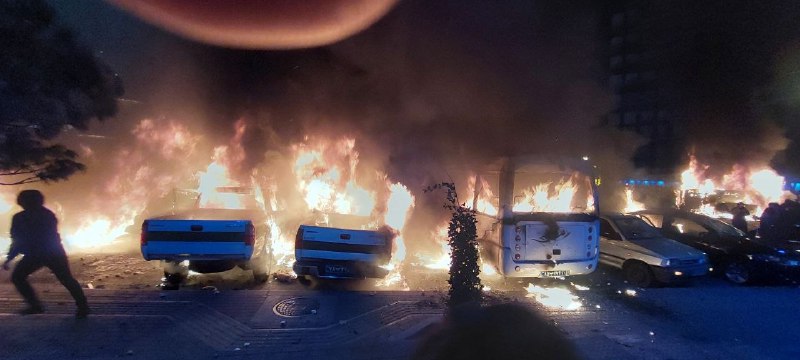 👑❌🇮🇷👮♂️ — Overnight, Iranian partisans attacked and destroyed the Police stations at the Sa’adat Abad (Pine Square) Kaj Square in Northern Tehran, one of most afluent and rich places of the Iranian capital