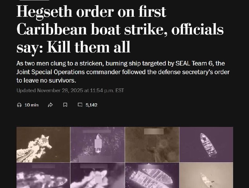 🇺🇸🇻🇪Pentagon chief Hegset personally ordered the killing of everyone on board a boat suspected of drug smuggling.
