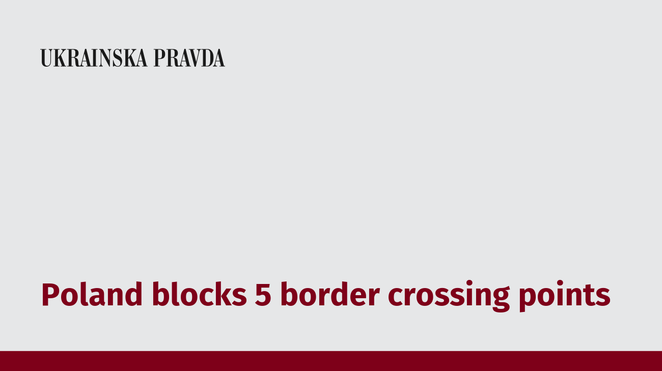 Five border crossing points between Ukraine and Poland on the Polish side are blocked as of the evening of Monday, 12 February.