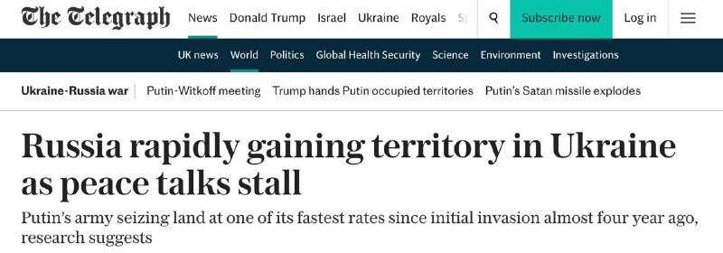 🇷🇺🇺🇦 Russia is currently seizing Ukrainian territory at the fastest pace since the beginning of the war, The Telegraph reports, citing the American Institute for the Study of War.