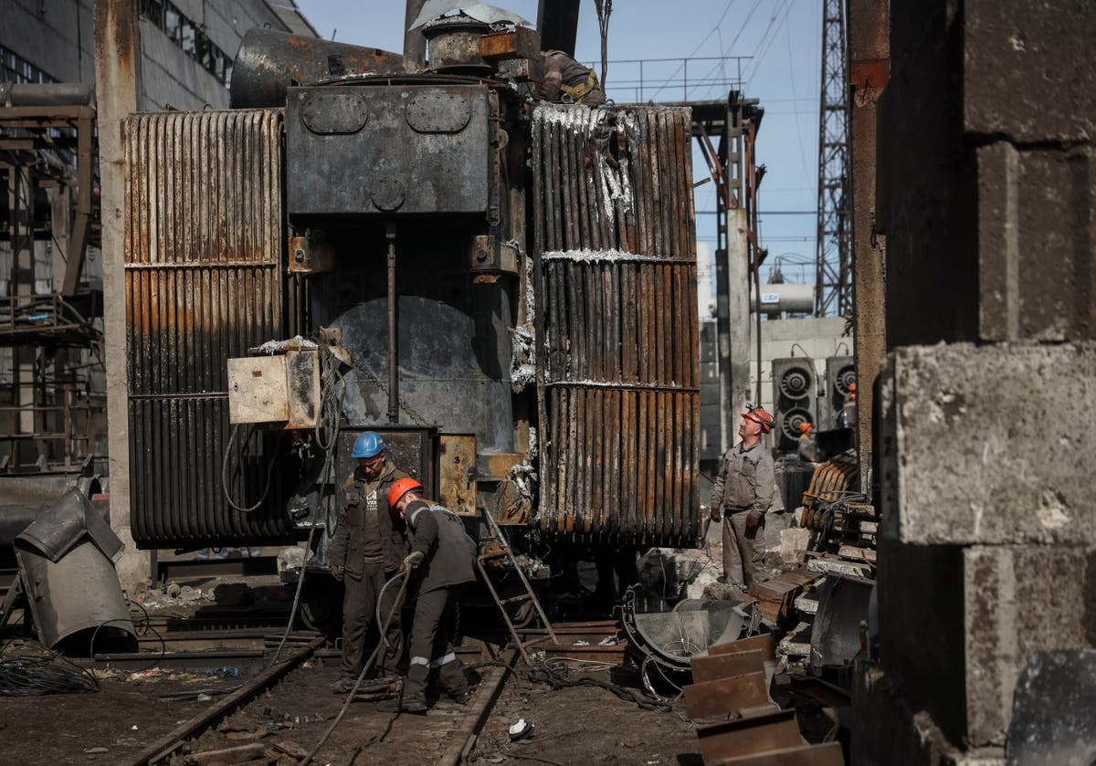 Images have been released of workers trying to repair a thermal power plant damaged by a recent Russian missile strike.