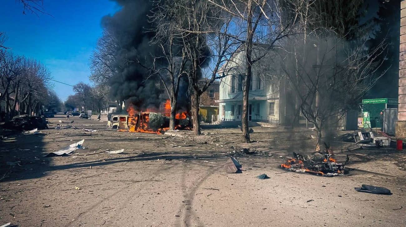 Sumy Oblast State Administration reports that an administrative building of a company was damaged in the city of Sumy. Dry grass caught fire on the area of 150 sq. m. As of now the fire has been put out.