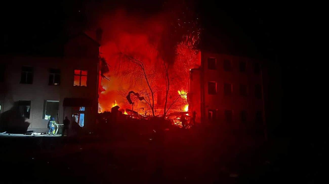 In Sloviansk, a missile hit a school, possibly leaving one person trapped under the rubble.