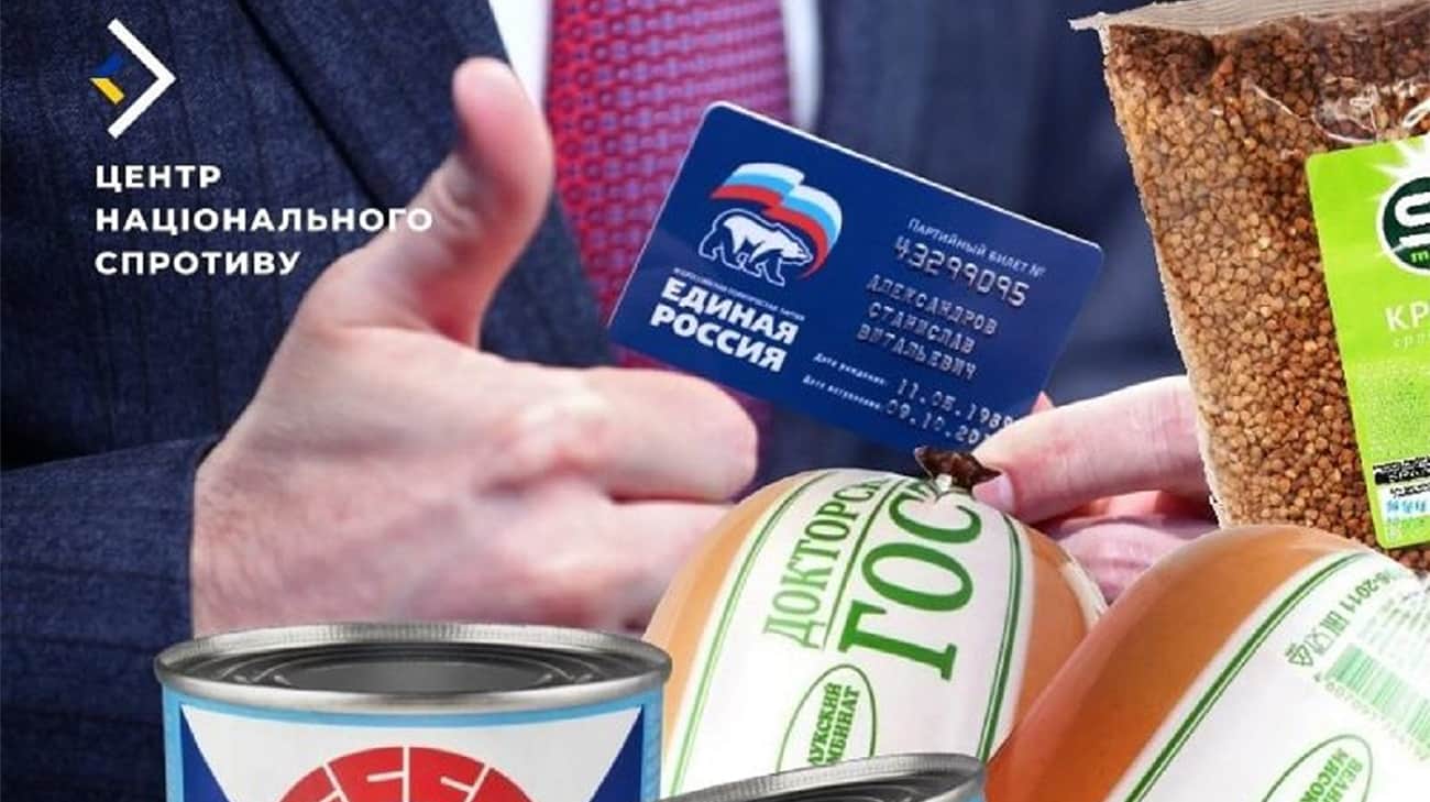 Russian occupation officials in Donetsk Oblast hand out humanitarian aid to people who join Putin’s United Russia party