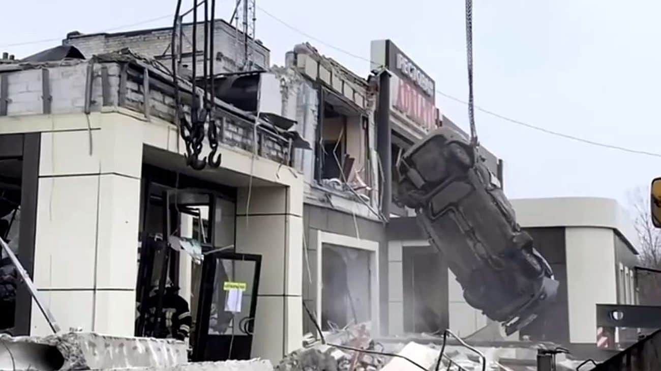 The building in Lysychansk which Russia claims was destroyed by a Ukrainian attack. Screenshot from video: Russia’s Ministry of Emergency Situations