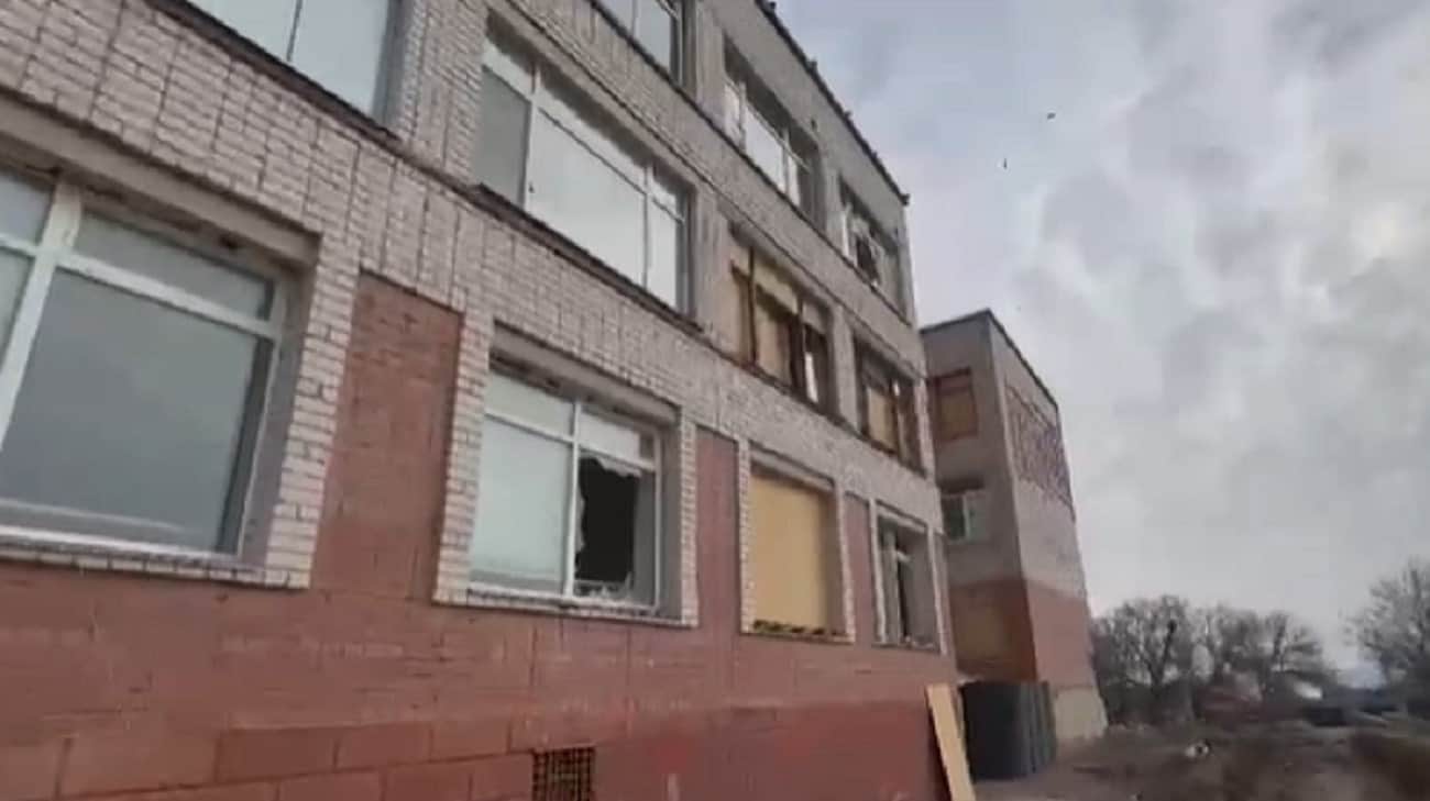 A building with broken windows. Screenshot: Kherson Oblast Military Administration’s video