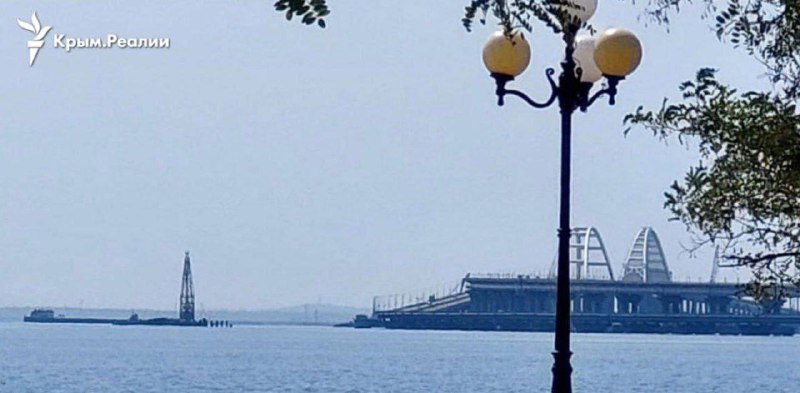 Russians in Kerch are constructing fortifications near the Crimean Bridge, according to Radio Liberty, which has published a photo showing a floating crane in the waters of the Kerch Strait. Additionally, the number of barges being used by the Russians to protect the bridge from sea drones has increased.