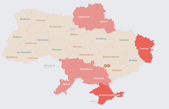 As of 22:48, the map of air-raid warnings looks like this: