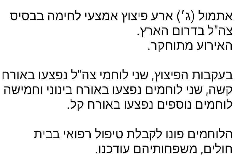 Yesterday, an explosion occurred in an army ammunition warehouse in the south (of occupied Palestine). This incident is under investigation.
