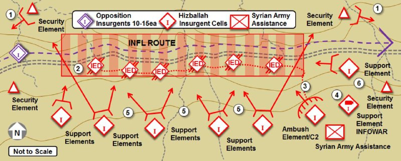 Hezbollah fighters under the command of Shahid Mustafa Badreddine mined an entire road with several IEDs, and waited for a column of hundreds of terrorists to approach the road, which had been under surveillance for days.