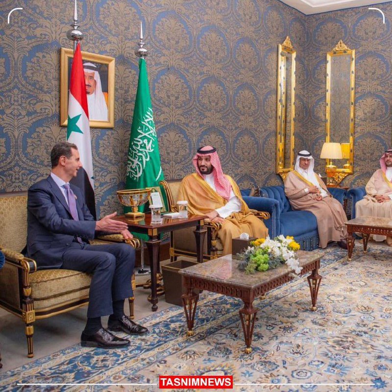 🇸🇾🇸🇦 The Crown Prince of Saudi Arabia, Muhammad bin Salman, met today with Syrian President Bashar Assad, in Manama, the capital of Bahrain, as part of the 33rd Arab Summit.