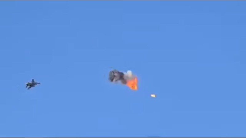 🇮🇱🇮🇷The moment an Iranian Shahed-136 kamikaze drone was intercepted by an Israeli F-16 , likely with an AIM-9 missile. View Source
