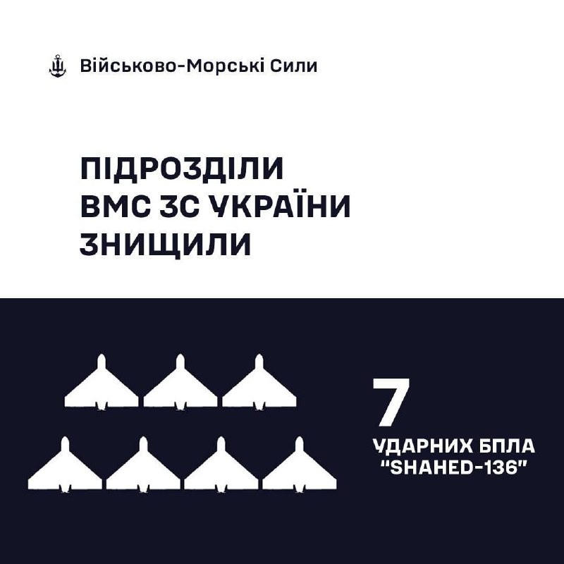 The Navy of the Armed Forces of Ukraine destroyed seven “Shaheds”On the night of…