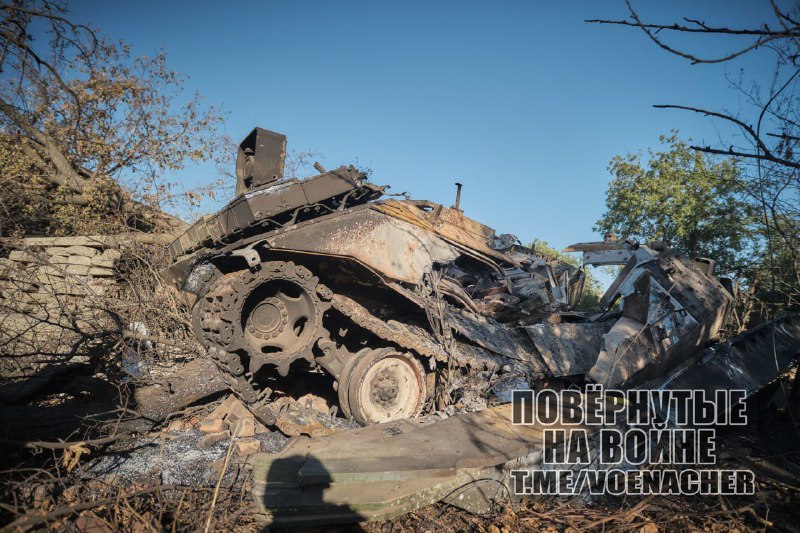 🇷🇺🇺🇦The remains of two destroyed American M2A2 Bradley ODS-SA infantry fighting vehicles in the village of Zhelannoye in the Pokrovsk direction. View Source