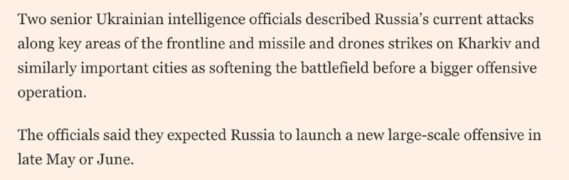 🇷🇺🇺🇦 The Russian Federation is preparing a major offensive in late May or June, sources in the Main Intelligence Directorate told the Financial Times.
