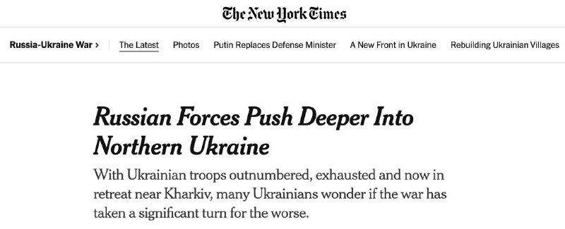 🇷🇺🇺🇦 The Russian offensive on the border of the Kharkov region may increase pressure on the Ukrainian authorities to begin peace negotiations, writes The New York Times.