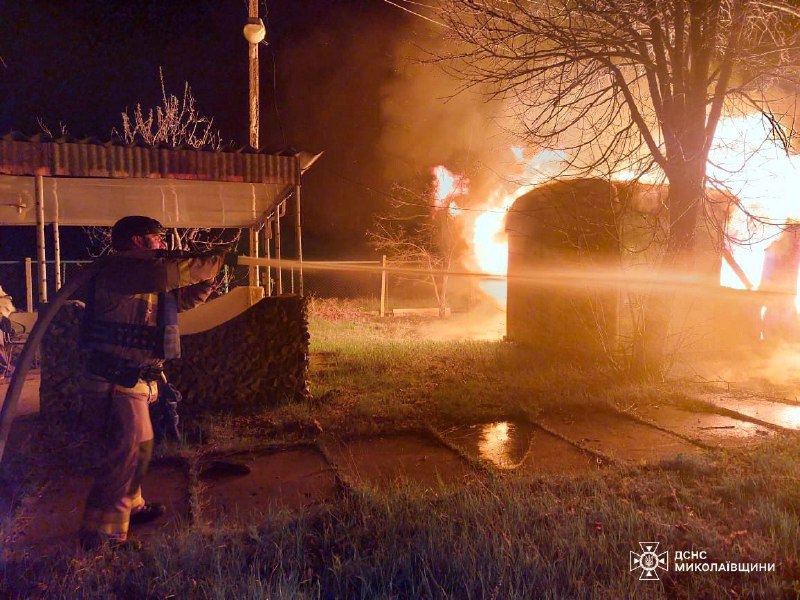 A fire broke out at a recreational facility in the Ochakivska community as a result of being hit by fragments of downed drones.