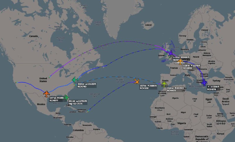 ▪️ Six EA-18G Growler electronic warfare aircraft took off from Oceana Naval Air Station in Virginia and headed to Rota Naval Air Station in Spain, supported by four KC-46A Pegasus aircraft.