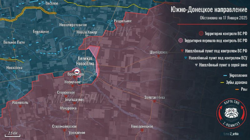 🇷🇺🇺🇦The village of Vremevka , located right next to Velikaya Novosyolka , has completely come under the control of the Russian Armed Forces.