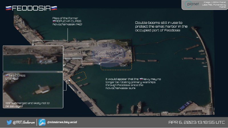 In addition to the destroyed BDK “Novocherkassk”, its remains are clearly visible on the satellite image.