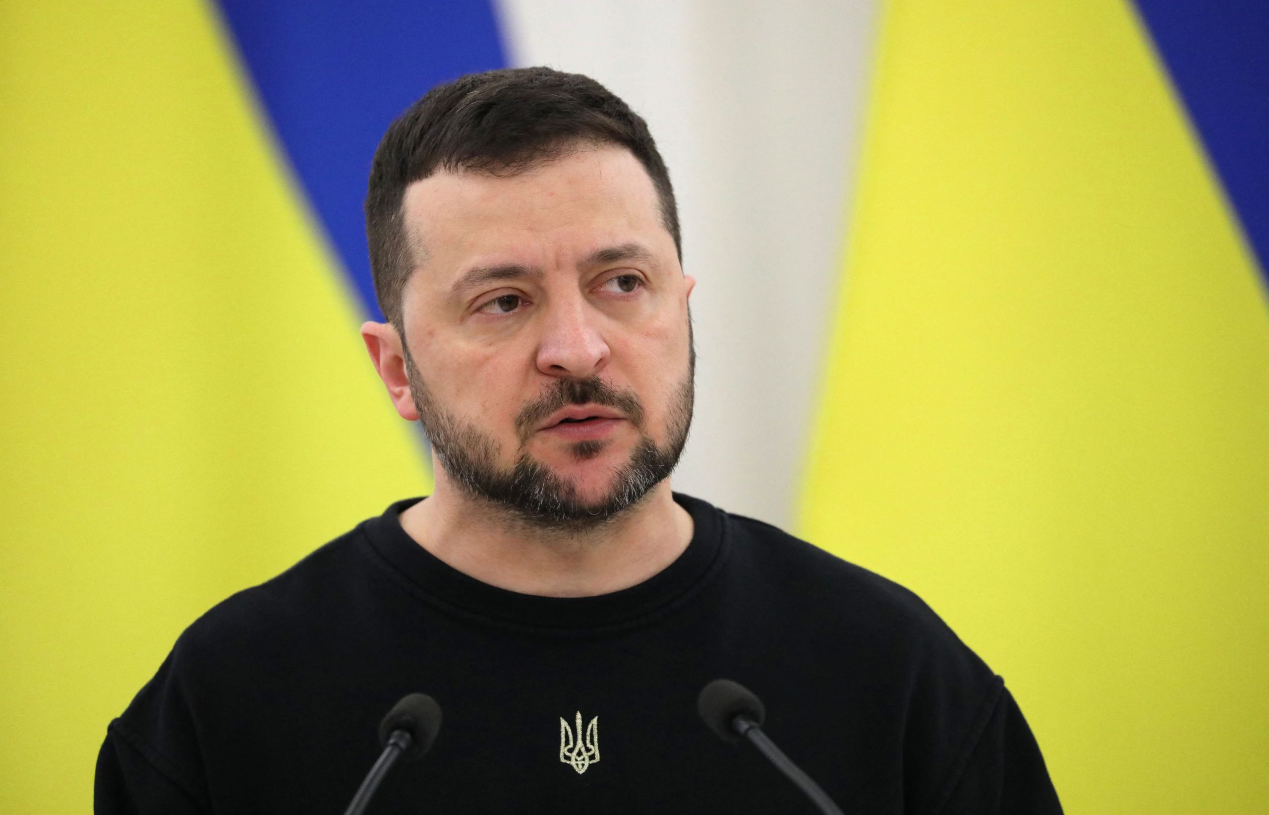 Ukraine’s President Volodymyr Zelenskyy speaks during a joint press conference with Lithuania’s President (not in picture) in Vilnius, Lithuania, on January 10, 2024.
